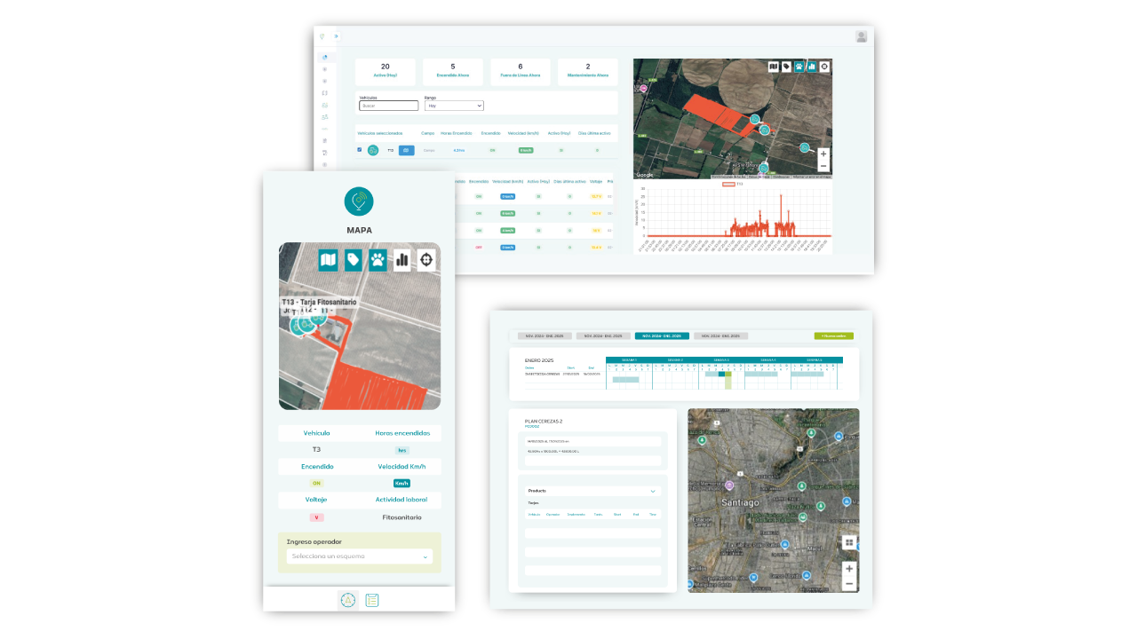 Desde el año 2018, hemos trabajado con productores agrícolas de todo Chile para mejorar el control operativo, reducir costos y aumentar la eficiencia mediante sistemas GPS, plataformas web y apps móviles.